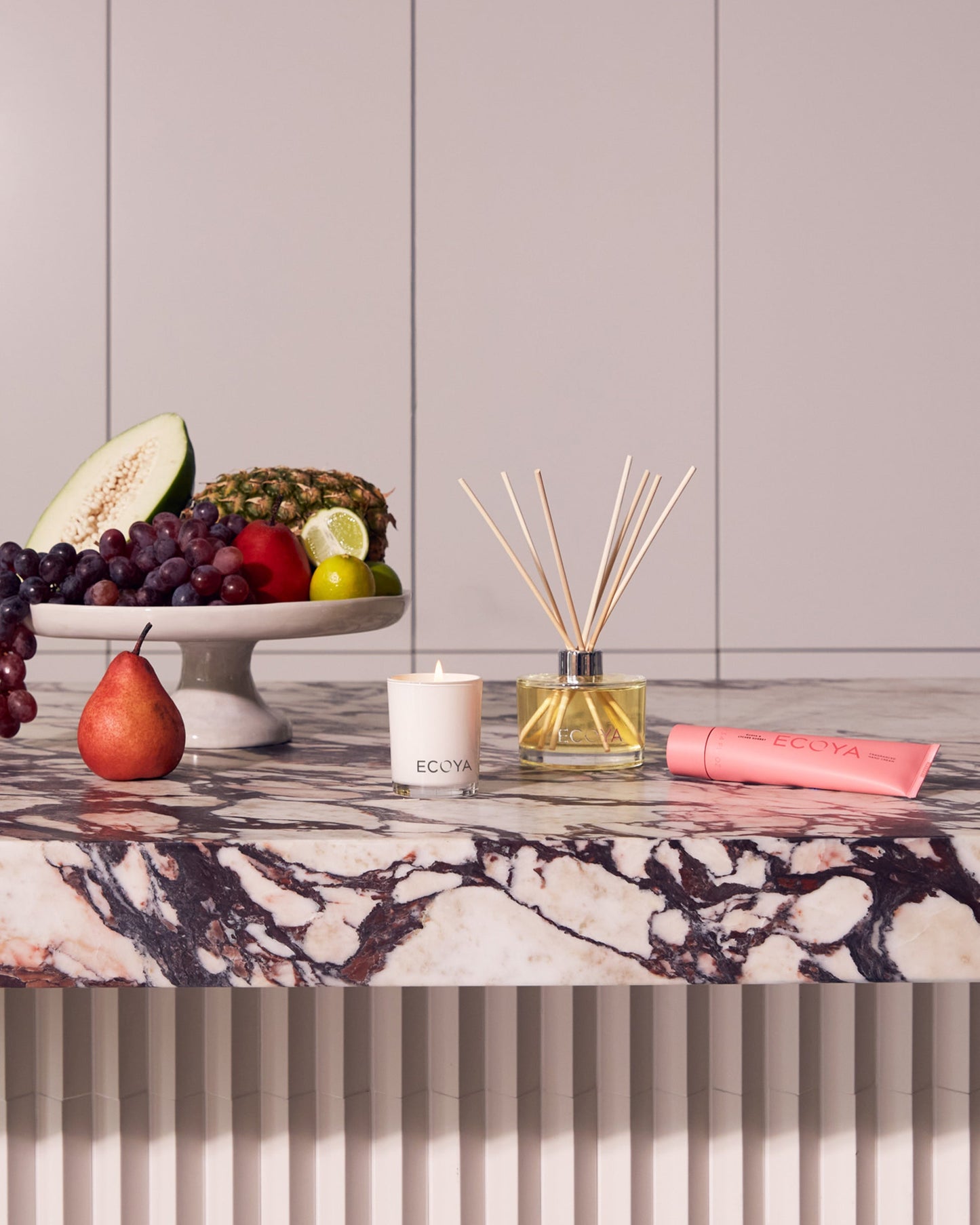 Refill your ECOYA diffuser with your favourite fragrance, available in 200mL refill pouches. Available in our most loved fragrances Sweet Pea & Jasmine, French Pear, Guava & Lychee Sorbet and Lotus Flower. The refill also comes with a new set of seven natural reed sticks, created to fit in your 200ml Reed Diffuser.