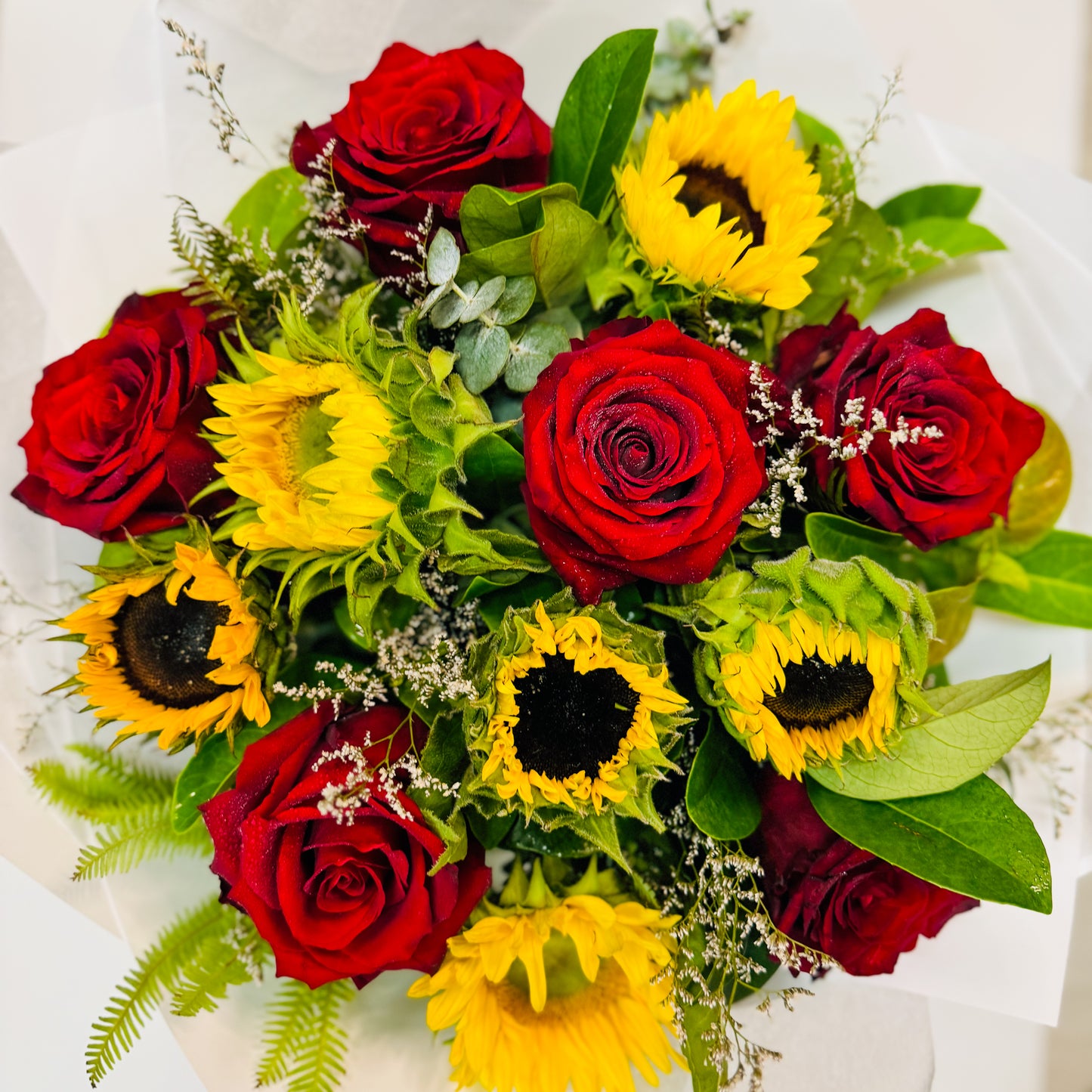 Radiant and timeless, our sunflower arrangements bring warmth with quiet elegance. Each design showcases the bold beauty of sunflowers, thoughtfully paired with soft, complementary blooms for a balanced, elevated look. Perfect for brightening spaces or lifting spirits, these arrangements offer a modern take on nature’s most joyful flower.